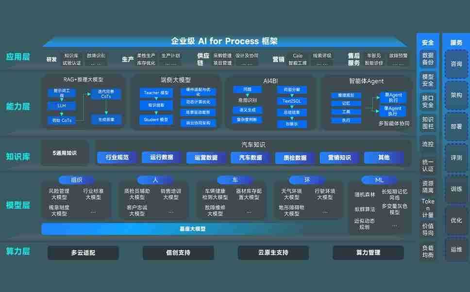 端到端的一站式AI工作空间深度融合了从企业战略规划到日常经营的全流程业务板块,,定向解决车企内部领域多、、、、部门多、、、链条长、、、、场景碎片化等难题,,,支持车企快速构建以AI为核心的生产力写作体系,,实现任务执行与AI能力的无缝集成与交互